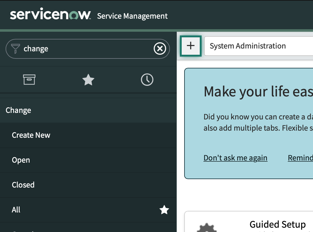 Once you have the REST Message set up, configure something to call it. Examples include when a ticket transitions as a step in a workflow or orchestration or a button or link on a form. This example uses a button in the form. Type “change” in the navigation filter as shown in the following image: