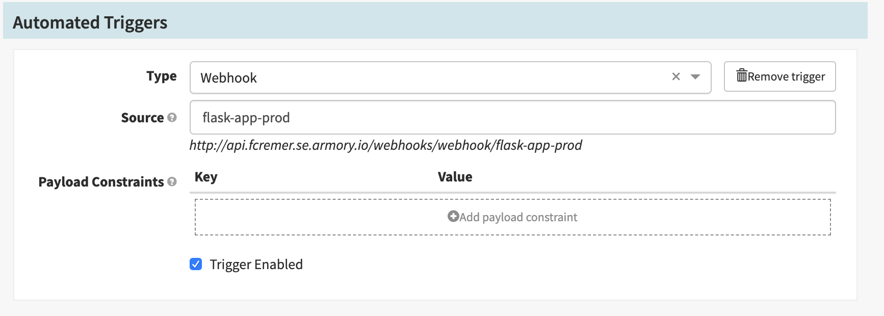 You can add payload constraints to avoid webhooks without the right payload from being processed. Armory recommends testing the webhook without contraints first.