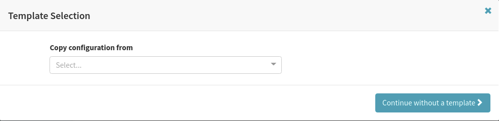 Because this is a new application, do not choose to copy a configuration from a template. Press the Continue without a template button.