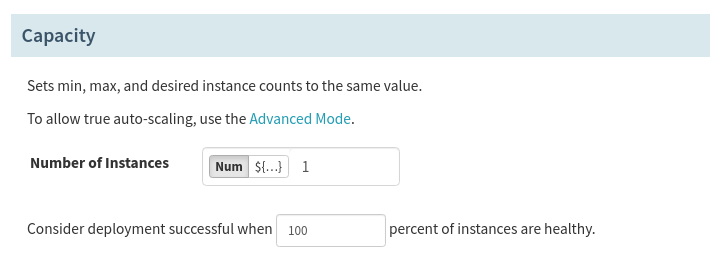 It’s important to set up the correct Deploy Strategy for your use case. Use the Highlander strategy for this example, which will ensure that only one server group for your application exists at a time.