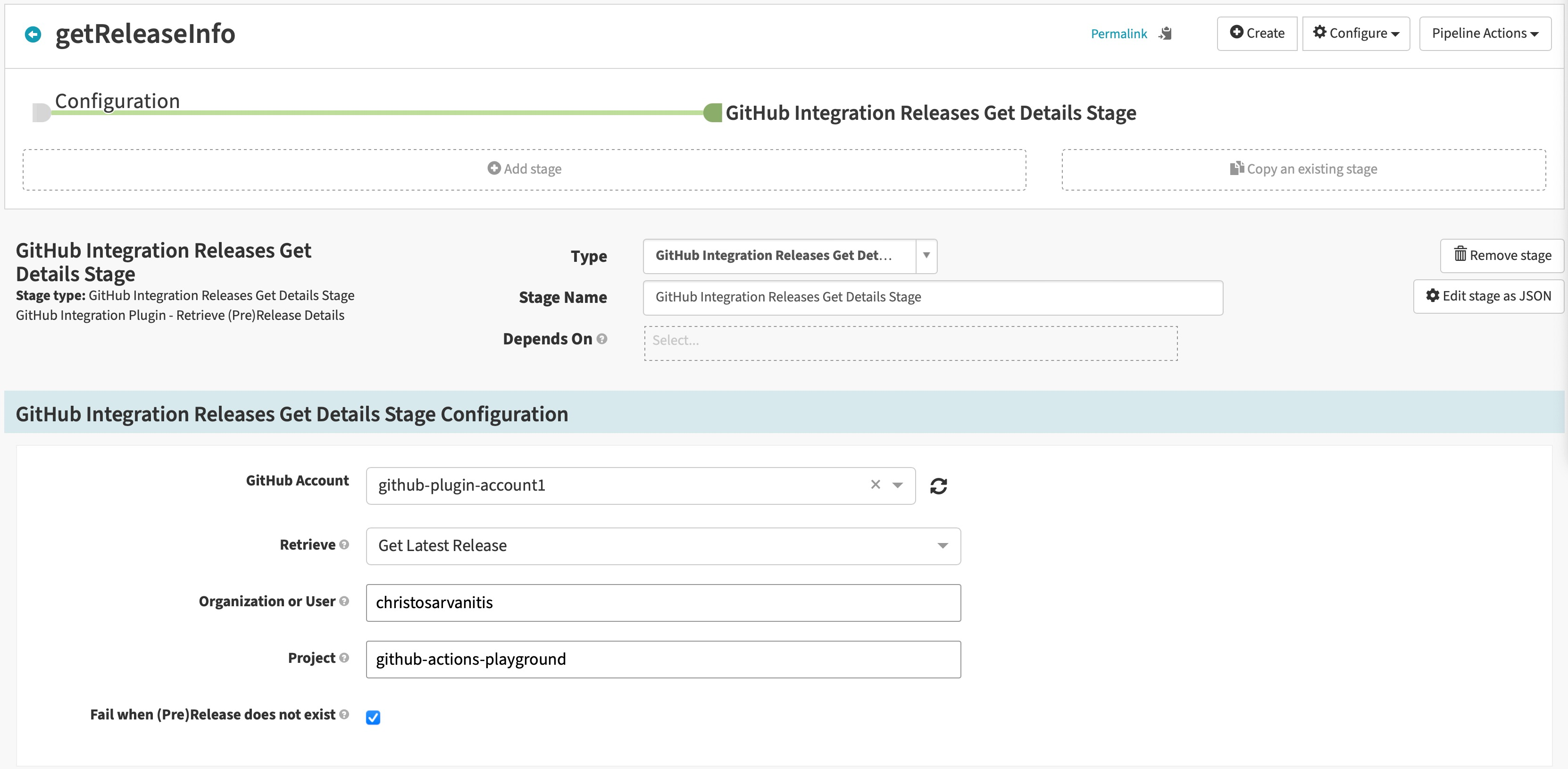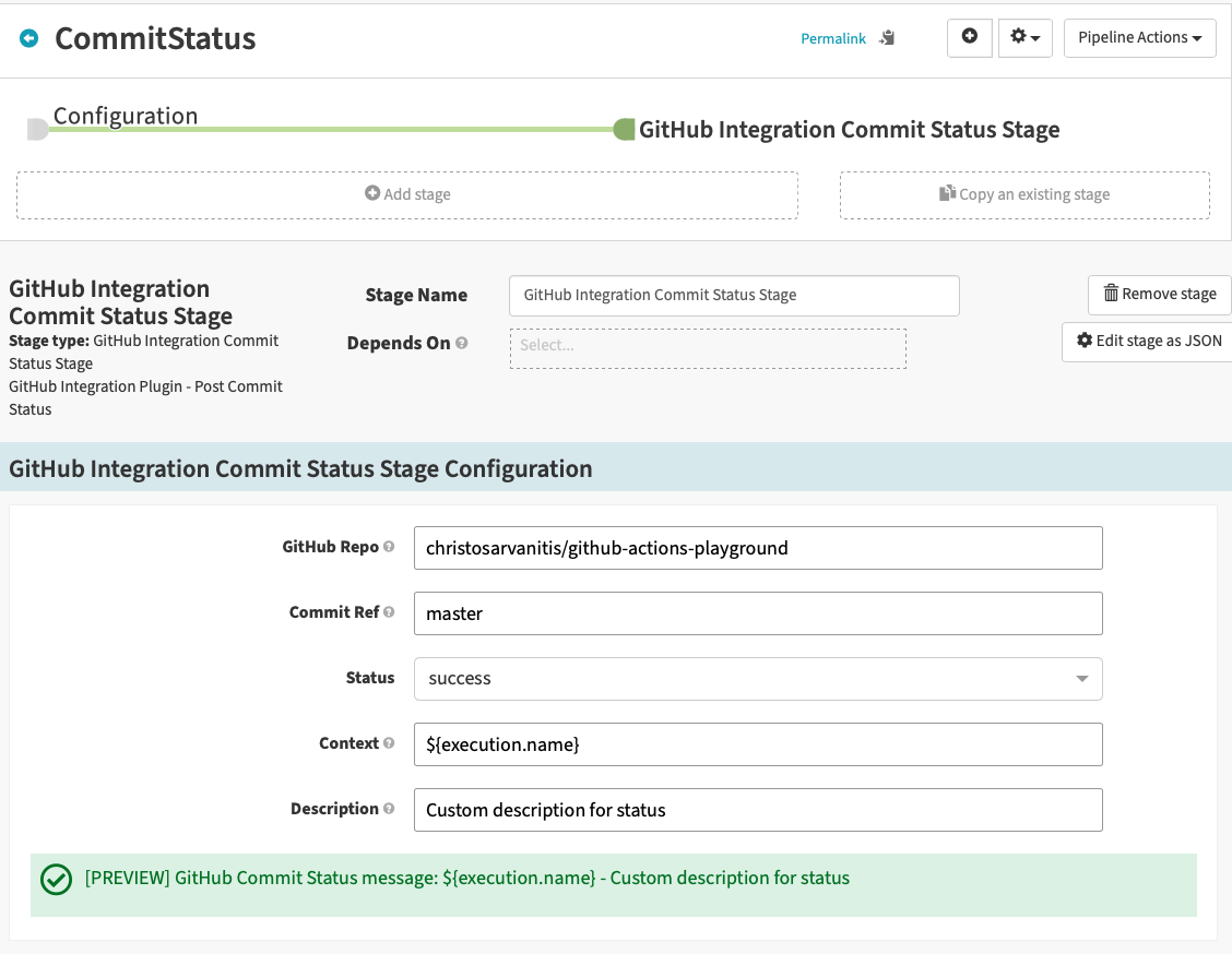 Configure the GitHub Integration Commit Status Stage as in the following screenshot: